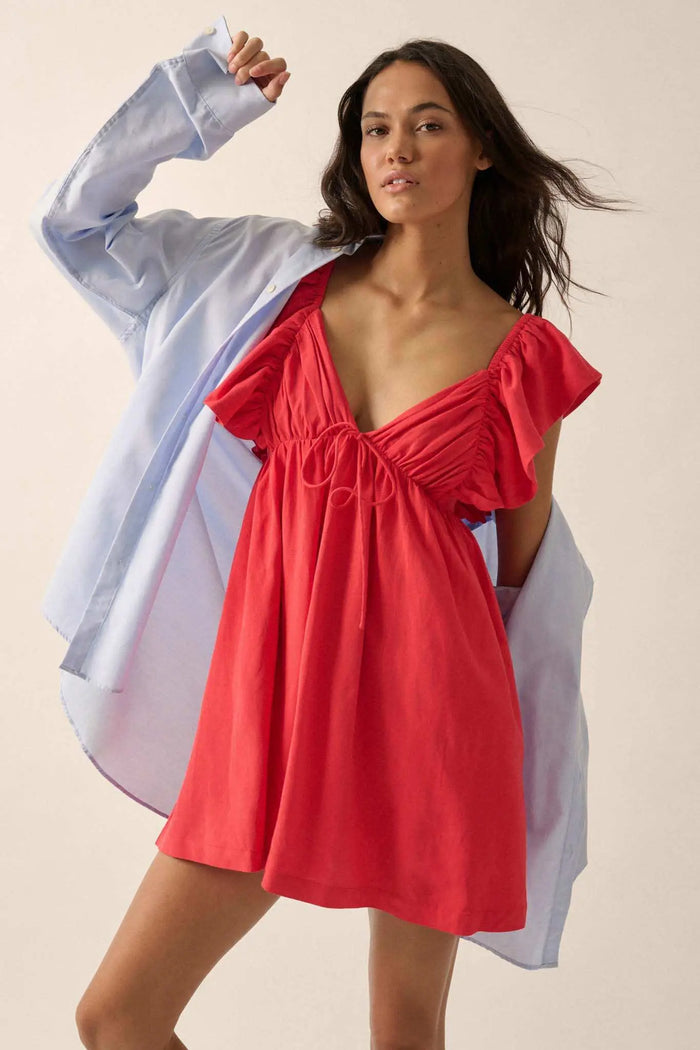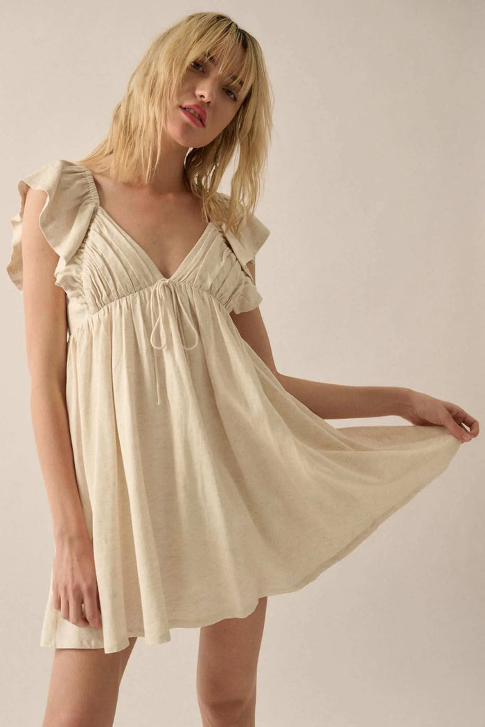 By Nature Ruffled Linen-Blend Babydoll Mini Dress