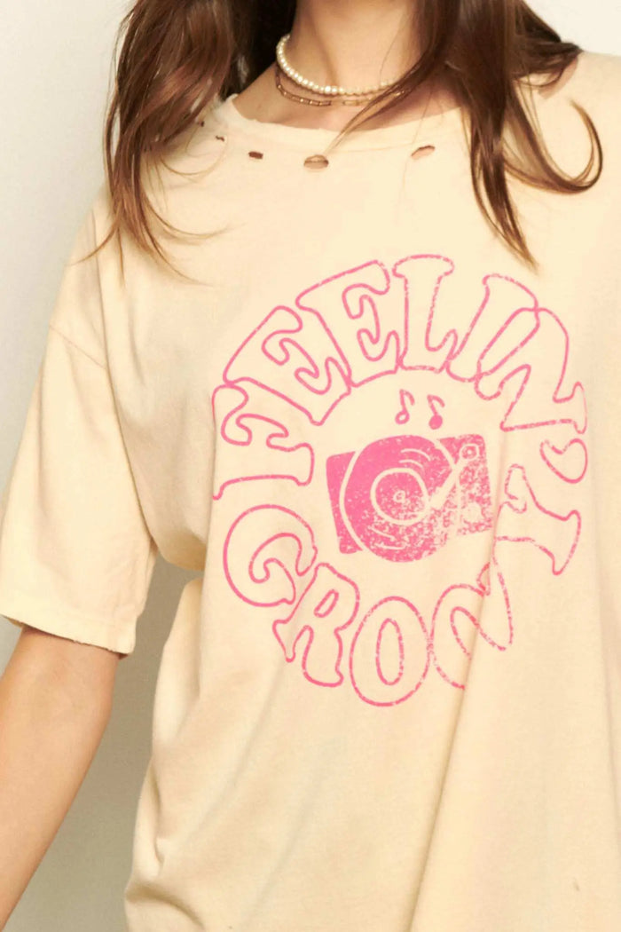 Stay Trippy Little Hippie Distressed Graphic Tee