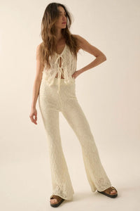 Dancing Diamonds Pointelle Crochet-Knit Pants - ShopPromesa