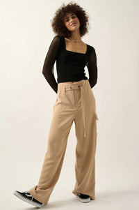 Lifted Fit Square Neck Mesh-Sleeve Crop Top - ShopPromesa