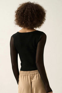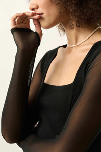 Lifted Fit Square Neck Mesh-Sleeve Crop Top