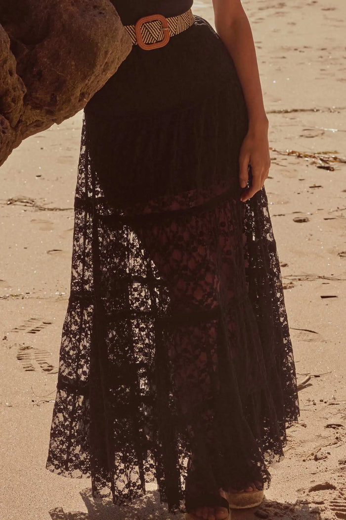Washed Ashore Raw-Edge Tiered Ruffle Maxi Skirt