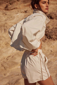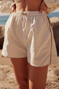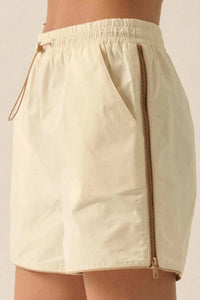 Zip Zap Side-Zip Piping-Trim Drawstring Shorts