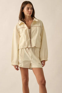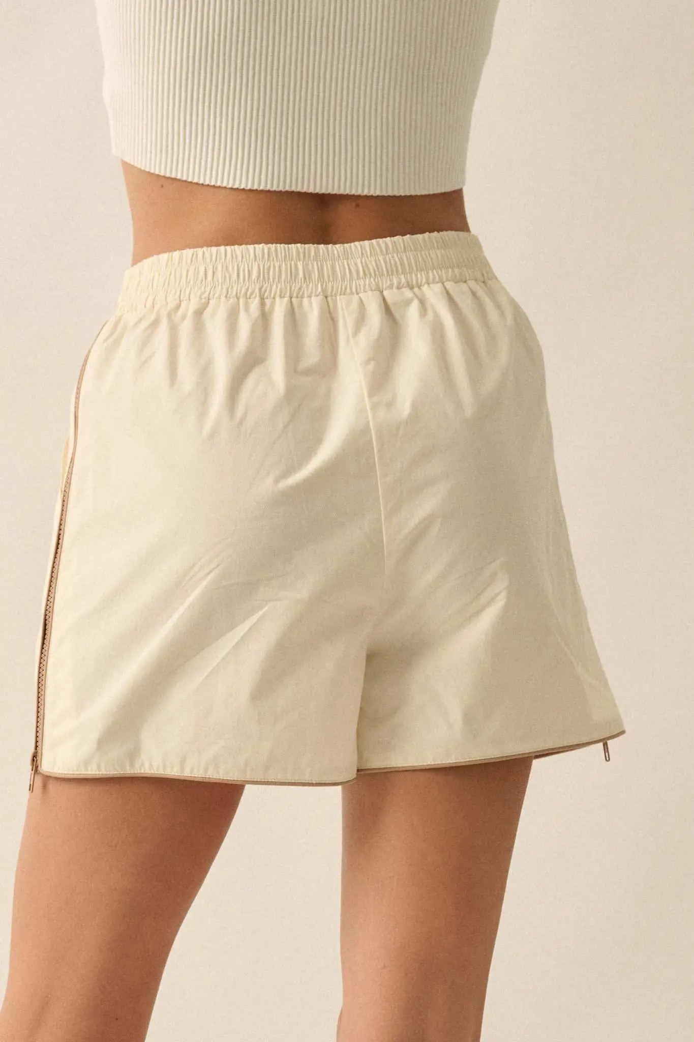 Zip Zap Side-Zip Piping-Trim Drawstring Shorts - ShopPromesa