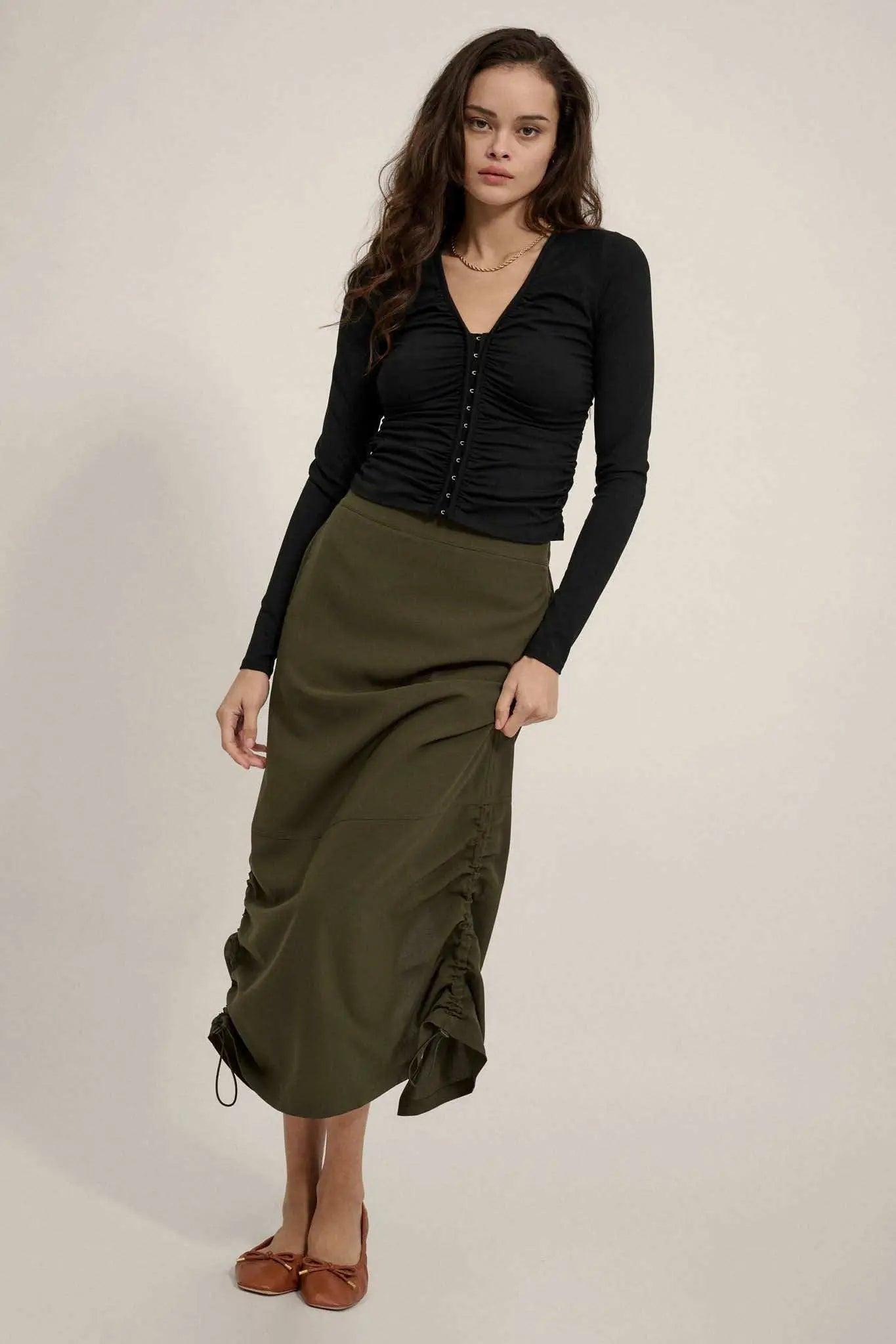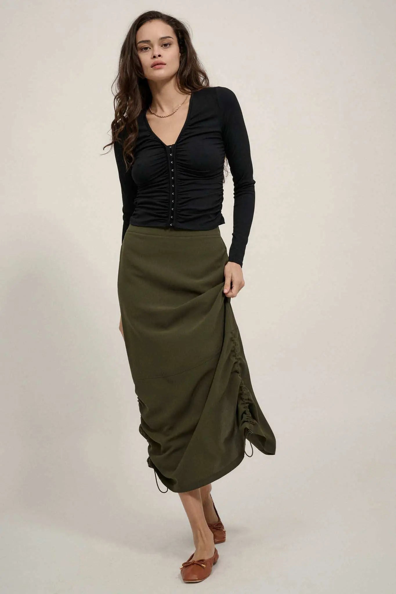 Draw Me In Ruched Drawstring Maxi Skirt - ShopPromesa