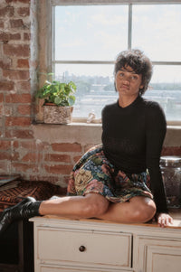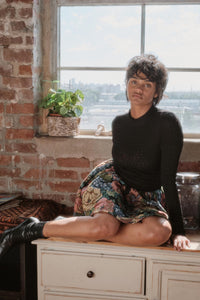 - Gathered skirt in floral jacquard tapestry fabric.