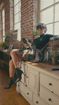 Blooming Brocade Knit and Floral Tapestry Mini Dress