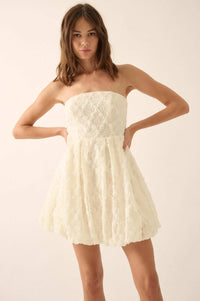 Grace Note Floral Lace Strapless Bubble Mini Dress - ShopPromesa