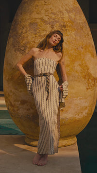 Whispering Waves Striped Knit Strapless Maxi Dress