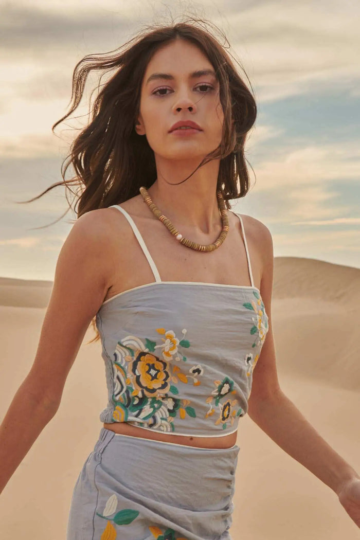 Summer Sun Floral Embroidered Strapless Maxi Dress