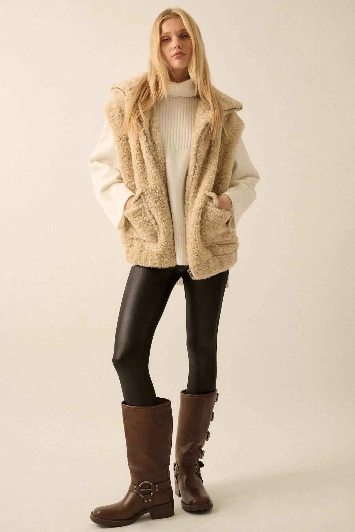 - Faux fur vest.