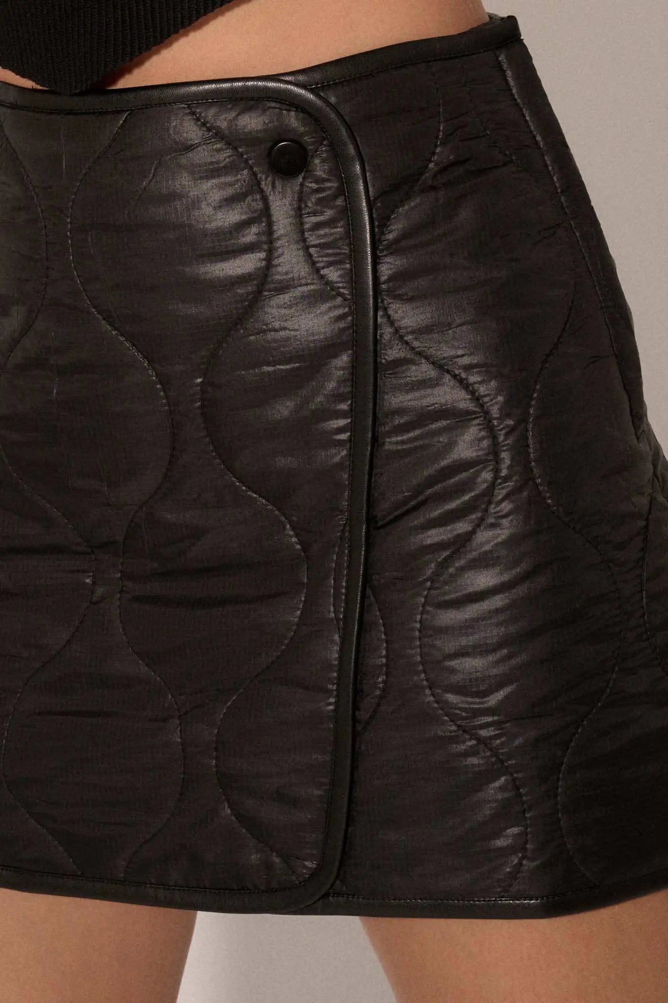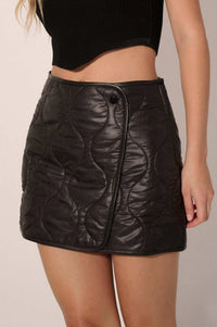 - Quilted faux leather mini skirt.