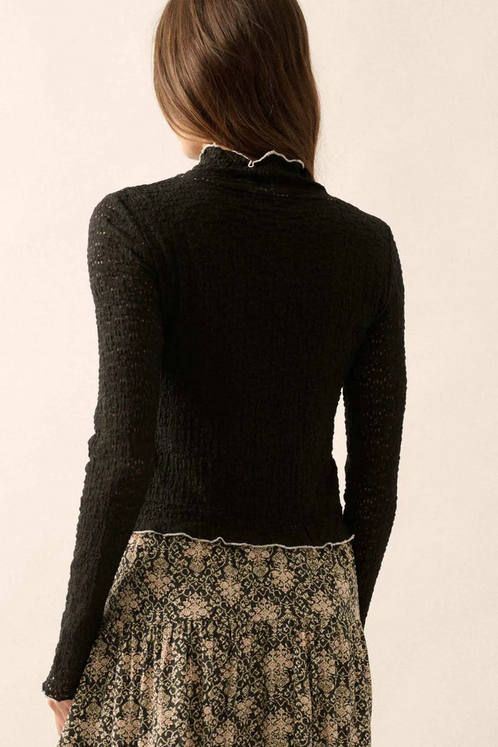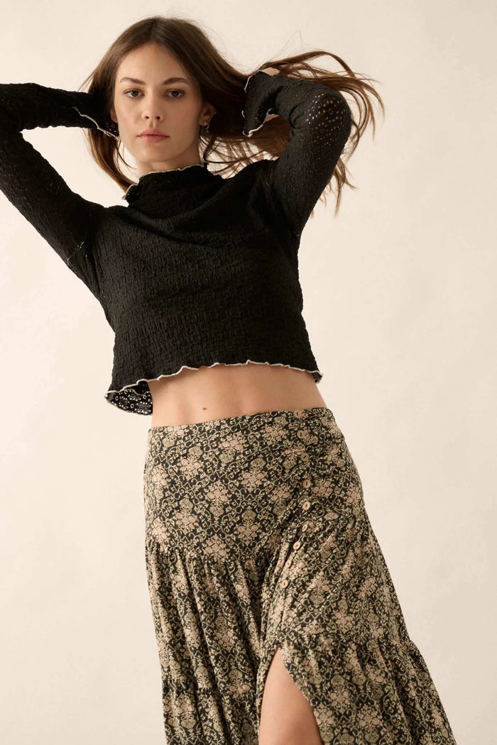 Autumn Blossoms Floral Mesh Mock-Neck Thumbhole Top