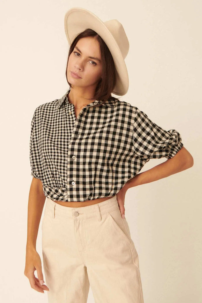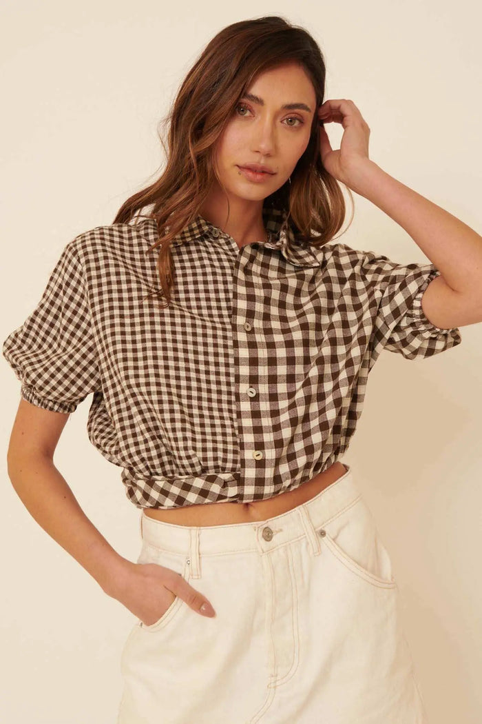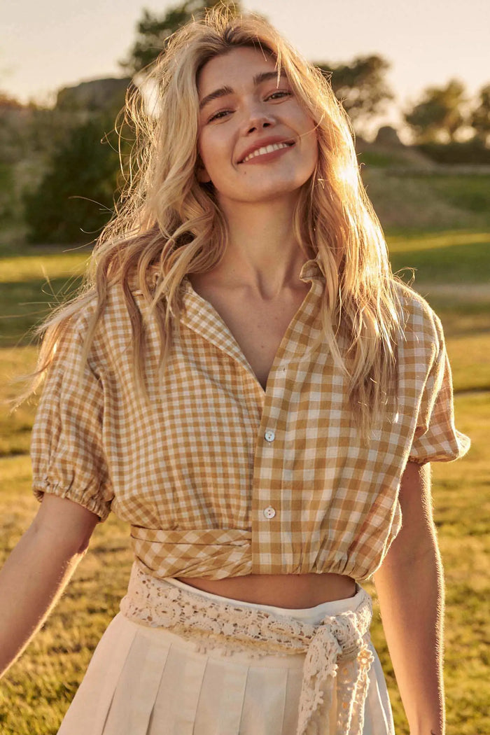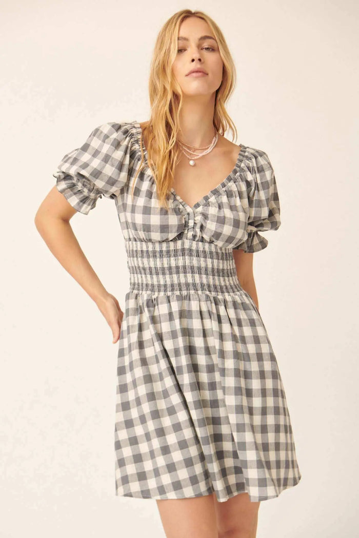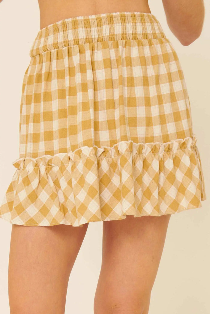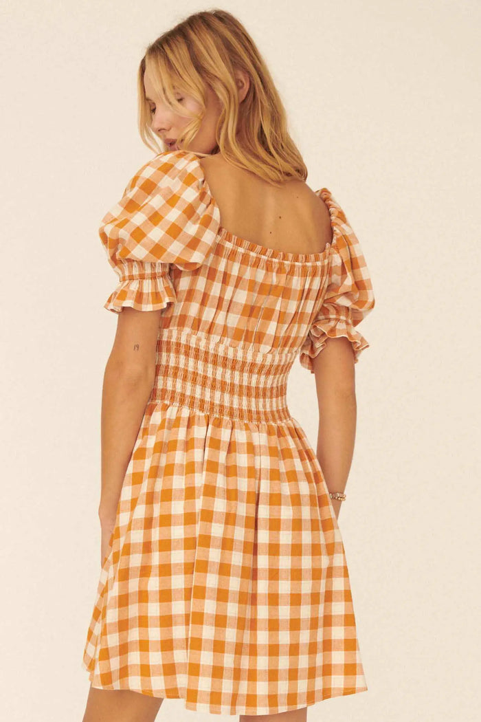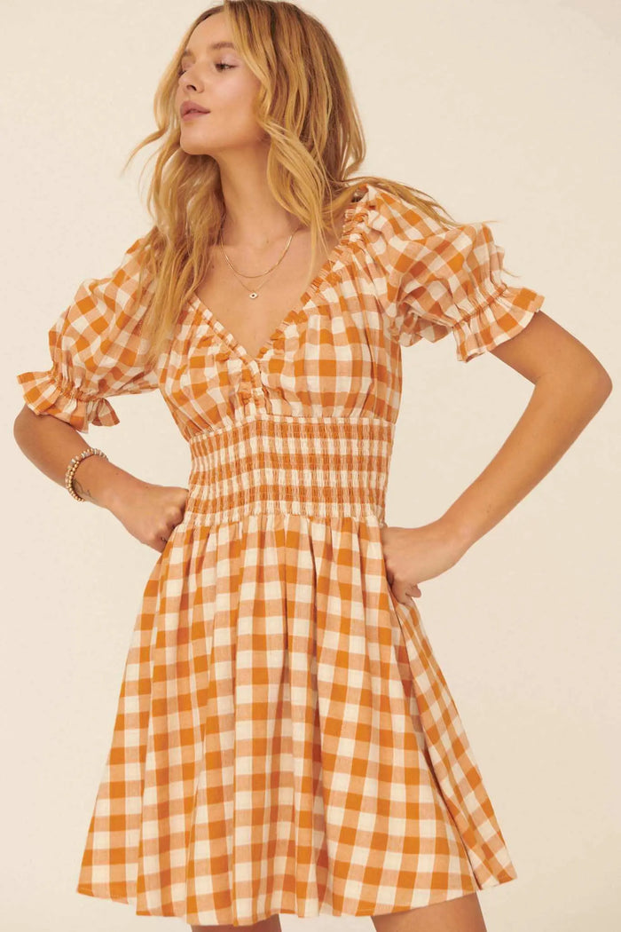 Candy Land Smocked Gingham Ruffled Peasant Top