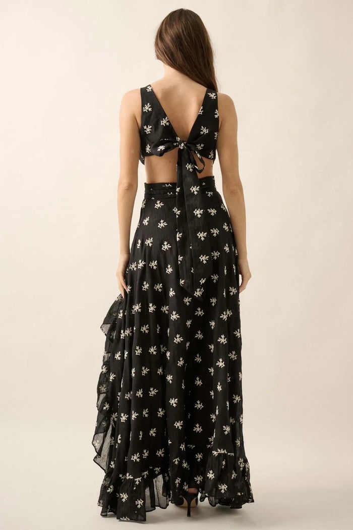 Wildflower Glen Floral Velvet-Trim Maxi Dress