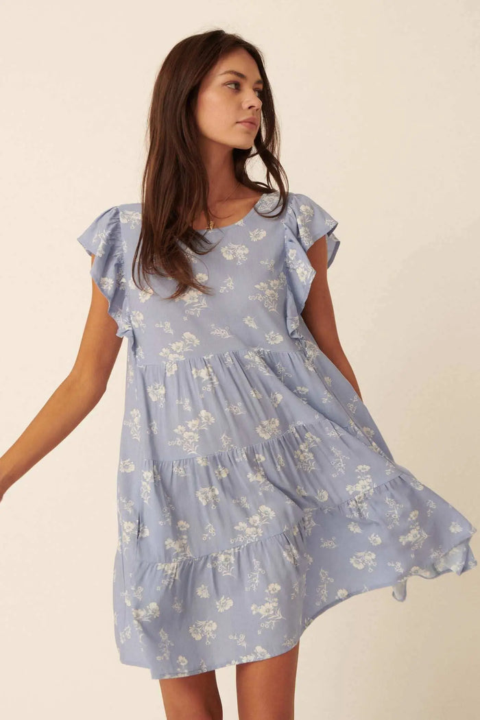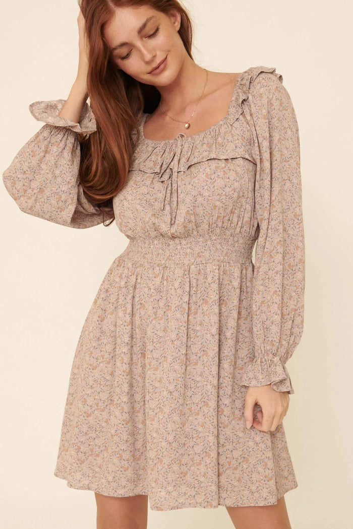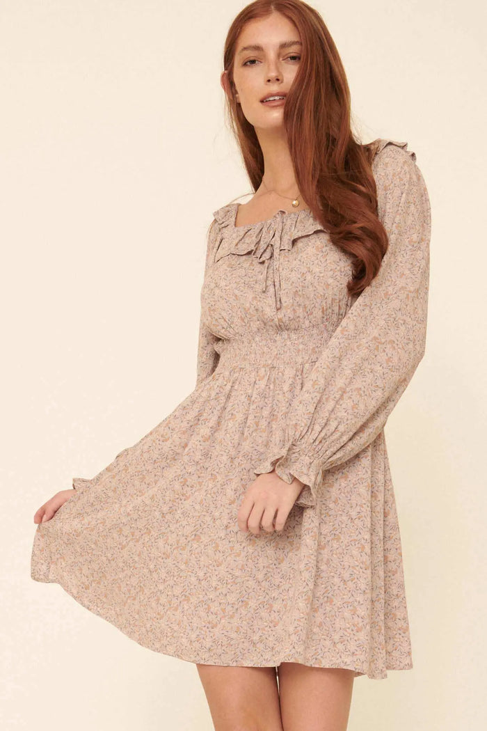 Dreamy Damask Floral Tapestry Babydoll Mini Dress