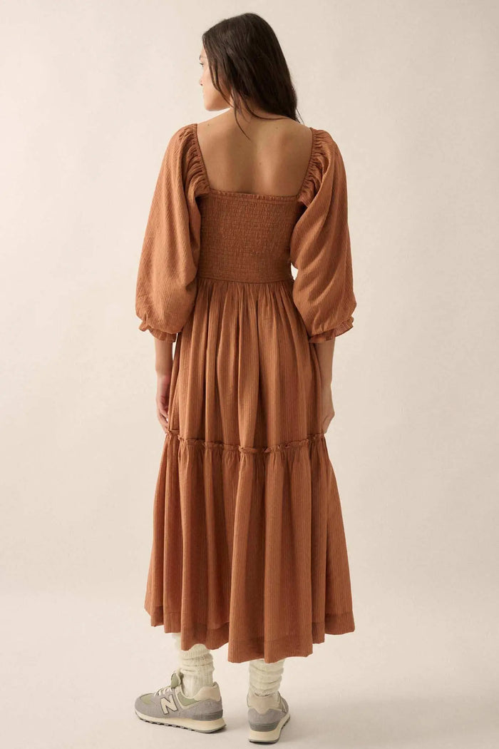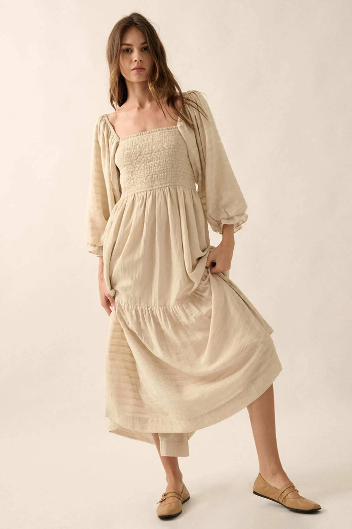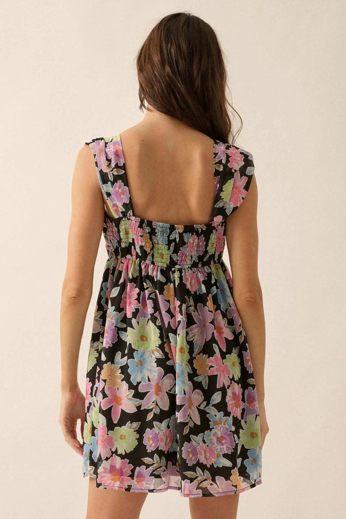 Delicate Blossoms Smocked Floral Chiffon Midi Dress