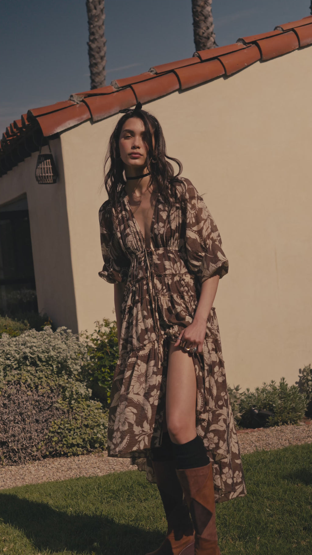 Bohemian Beauty Floral Chiffon Tiered Midi Dress