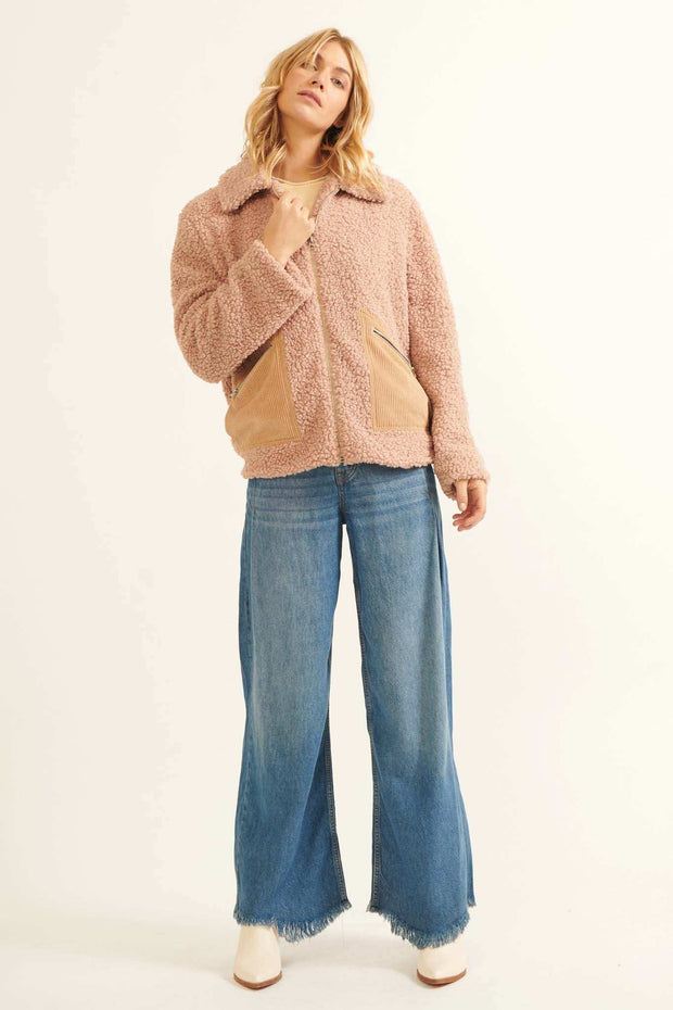 Warm Fuzzies Faux Shearling Zip-Up Teddy Jacket
