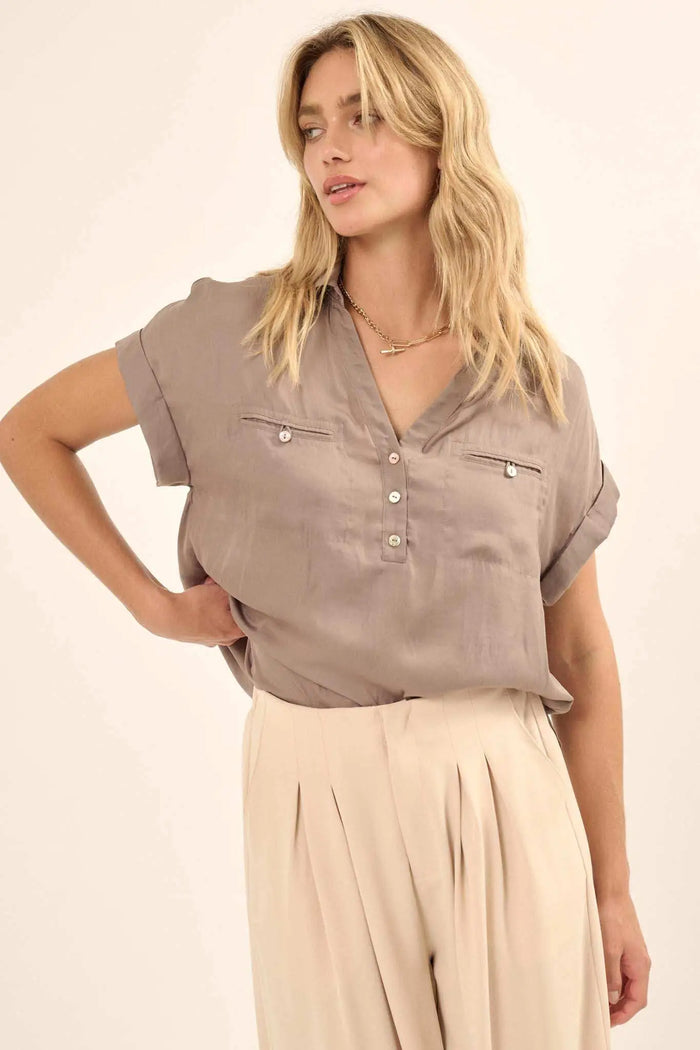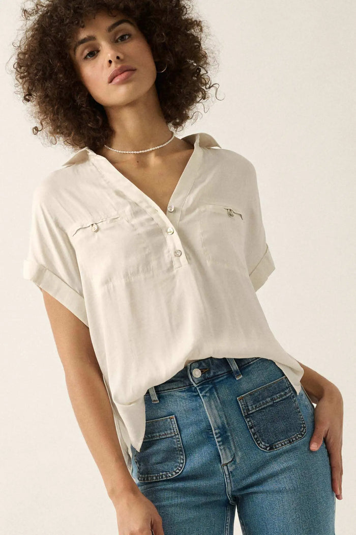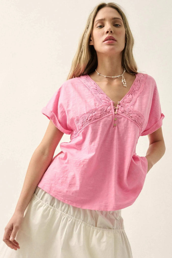 Rise and Shine Lace-Trimmed Slub Cotton Henley Tee