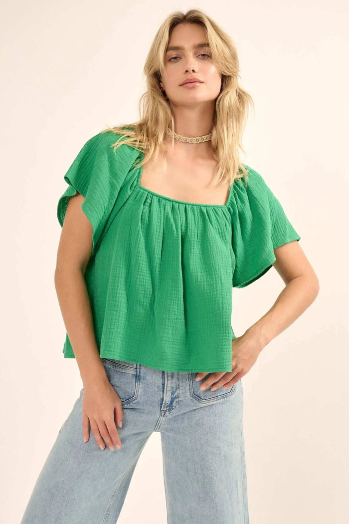 Touch of Love Crinkle Cotton Tie-Back Babydoll Top