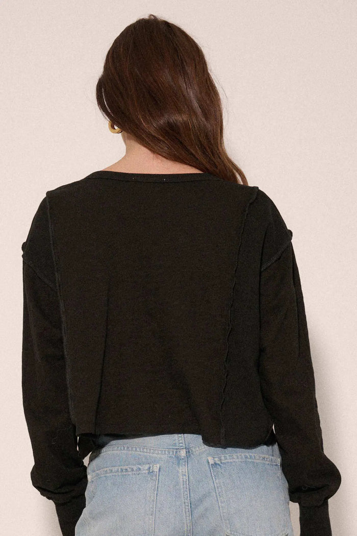 Slow Your Roll Exposed-Seam Roll-Up Henley Sweater