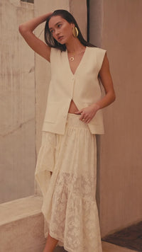 Pure Air Floral Lace Asymmetrical Ruffle Maxi Skirt - ShopPromesa