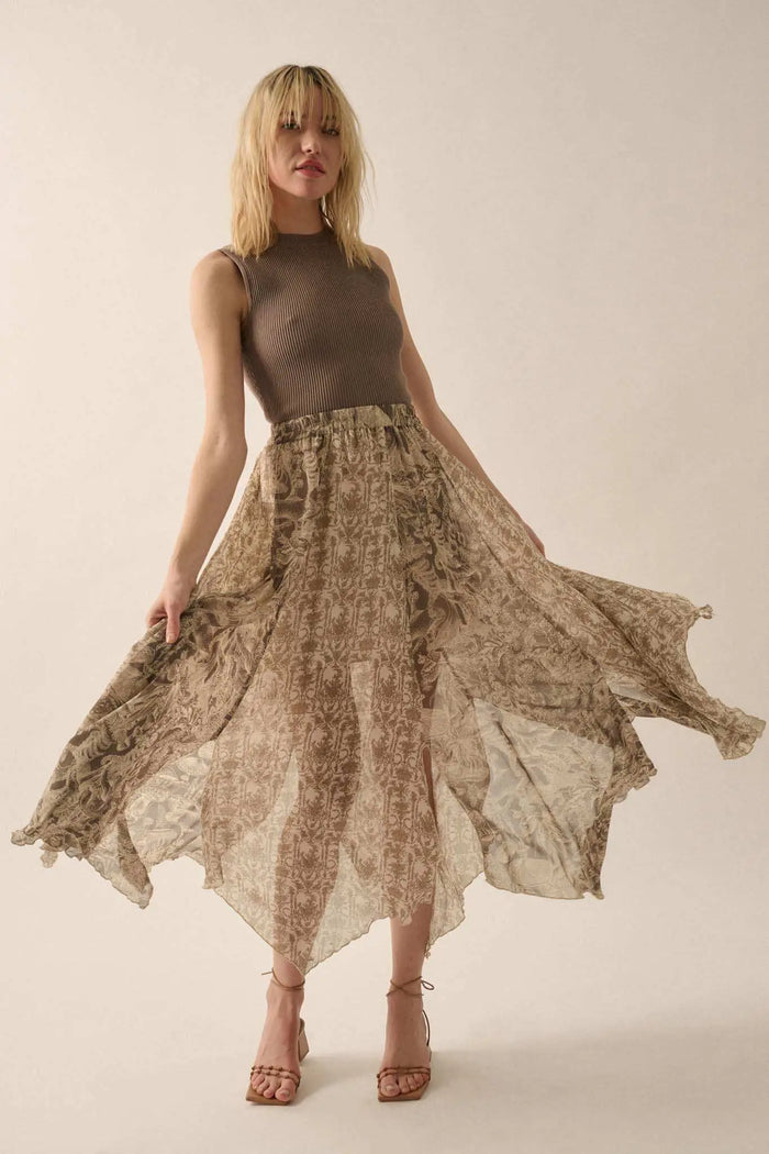 Vintage Winds Ornate-Print Handkerchief Maxi Skirt