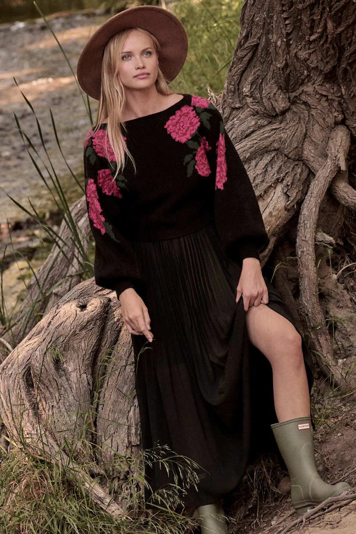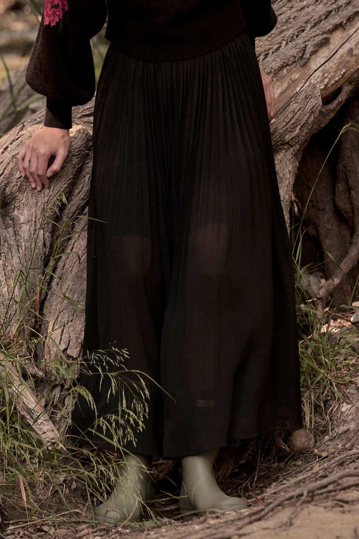 Autumn Bouquet Floral Chiffon Button-Front Maxi Skirt