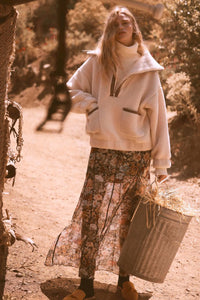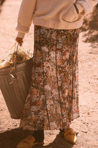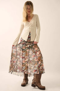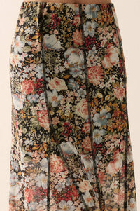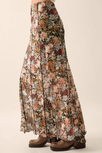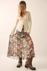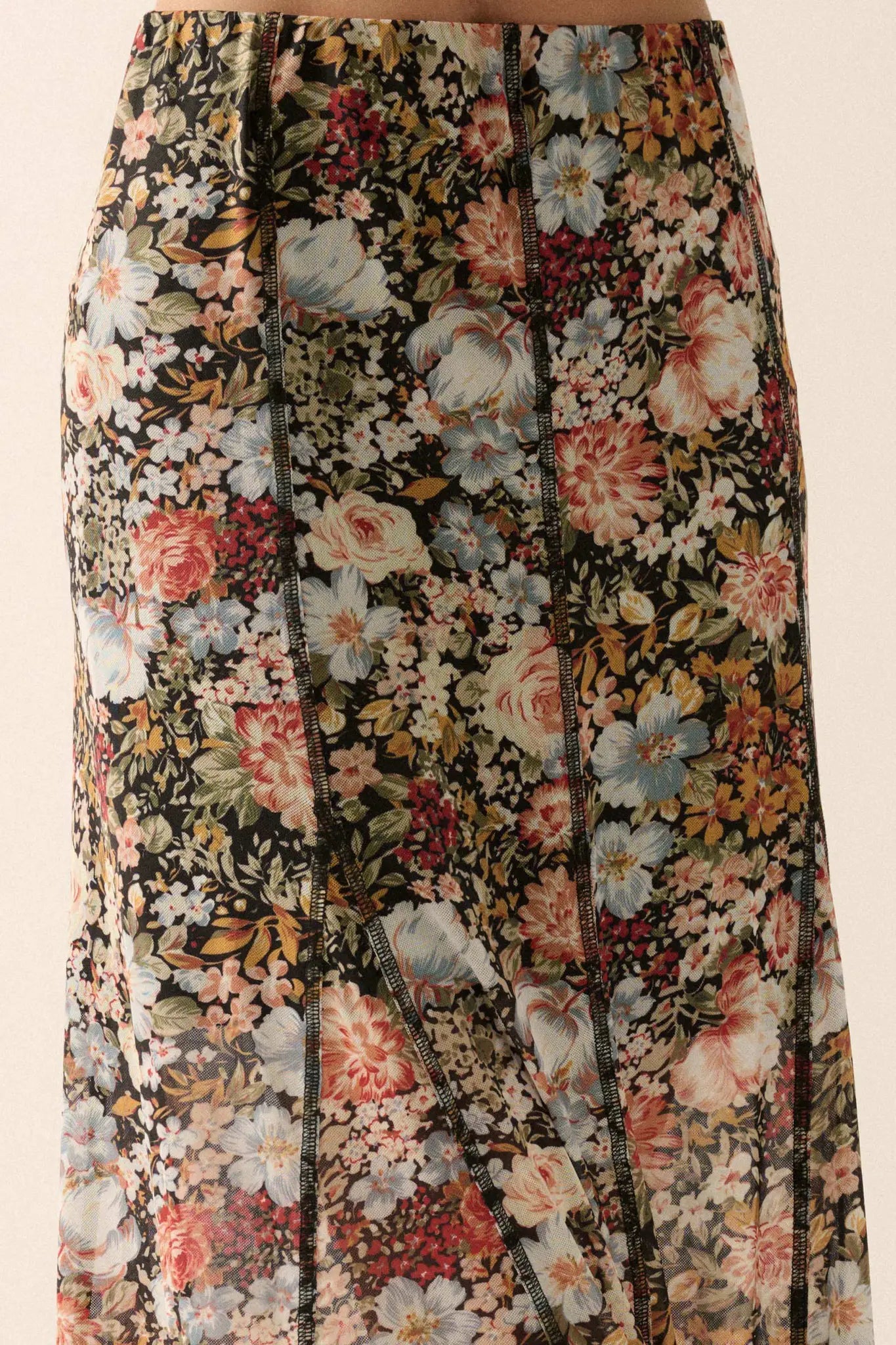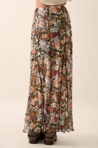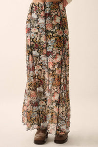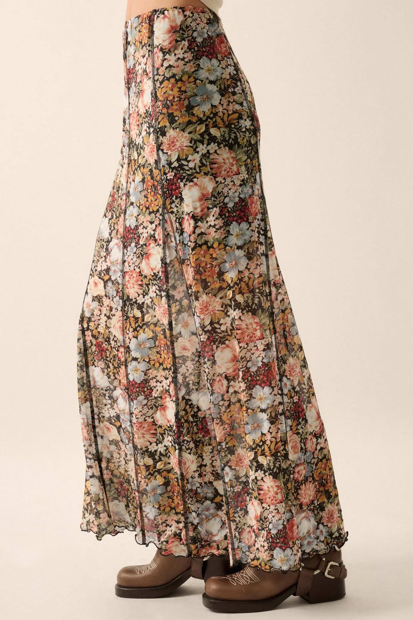 Autumn Harvest Floral Mesh Paneled Maxi Skirt