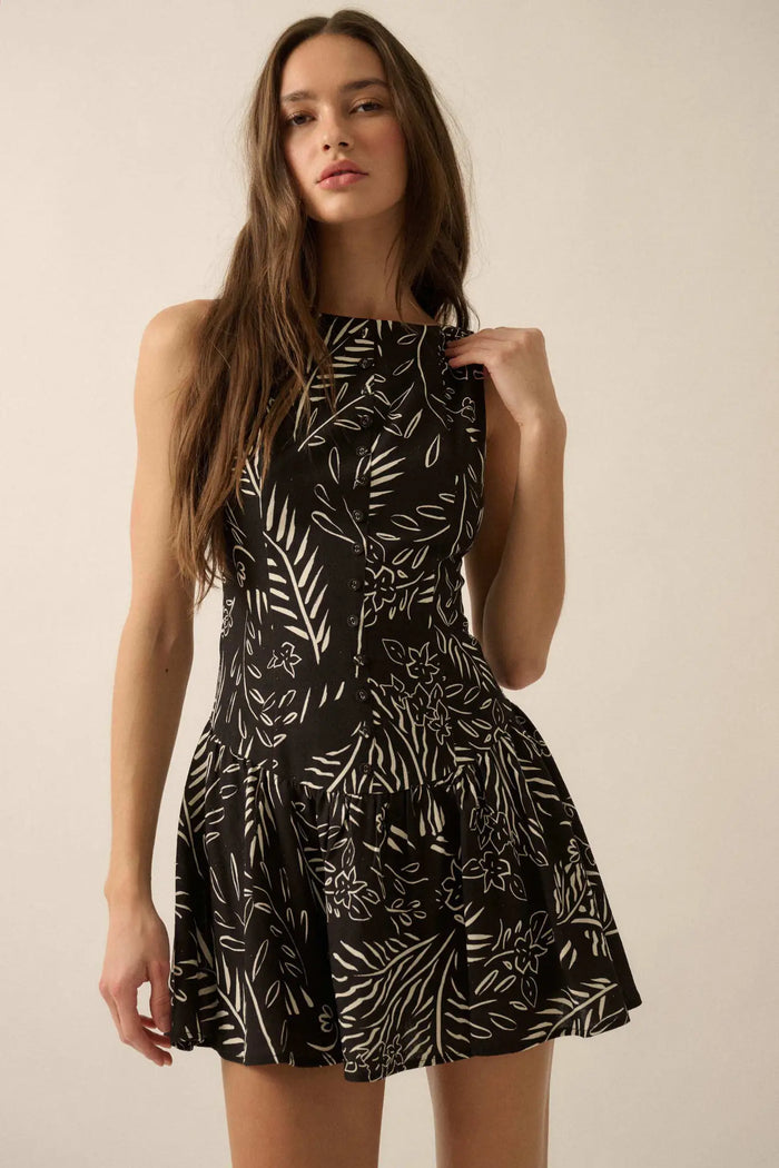 Dreamy Damask Floral Tapestry Babydoll Mini Dress