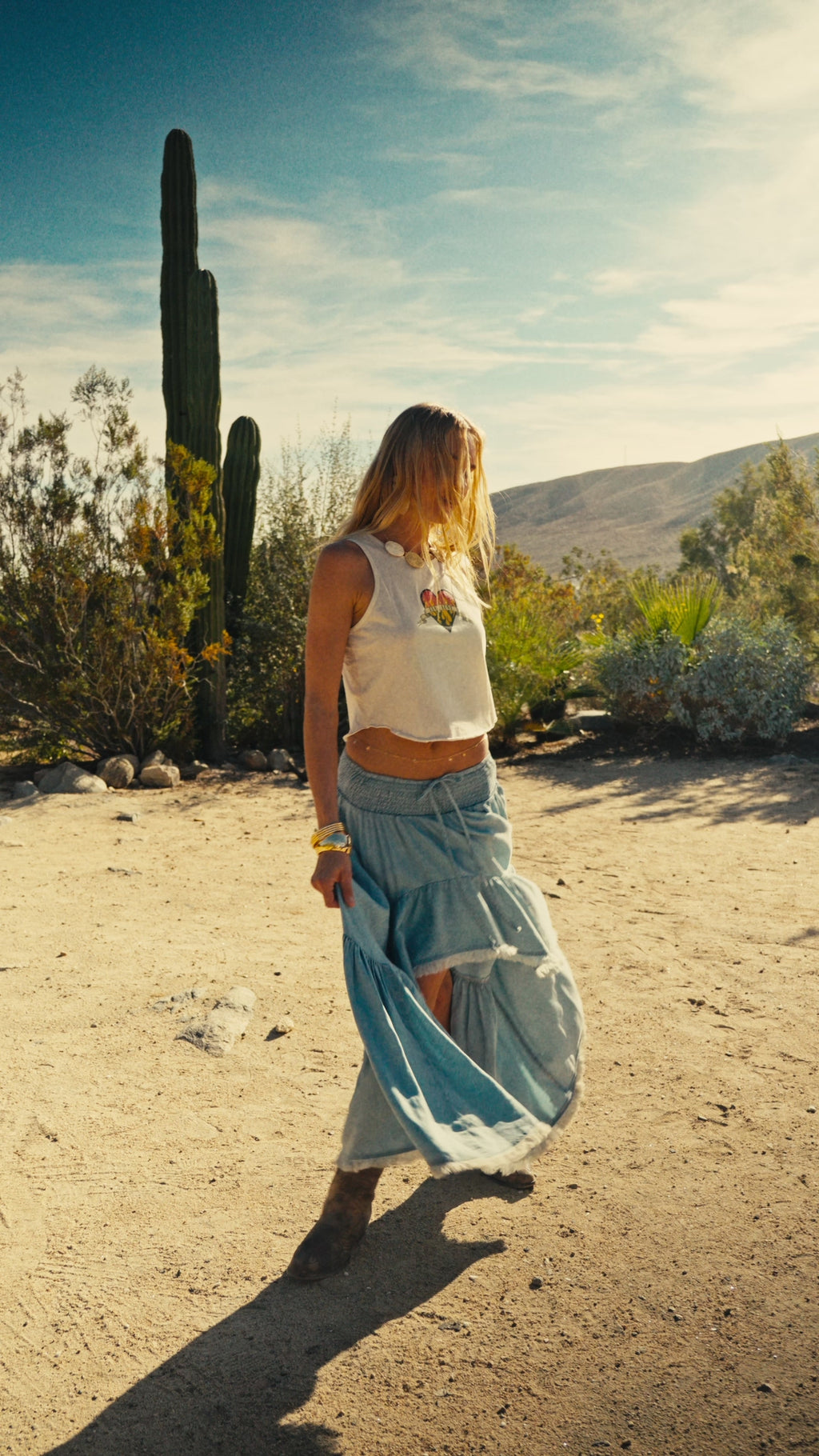 - Chambray denim maxi skirt.