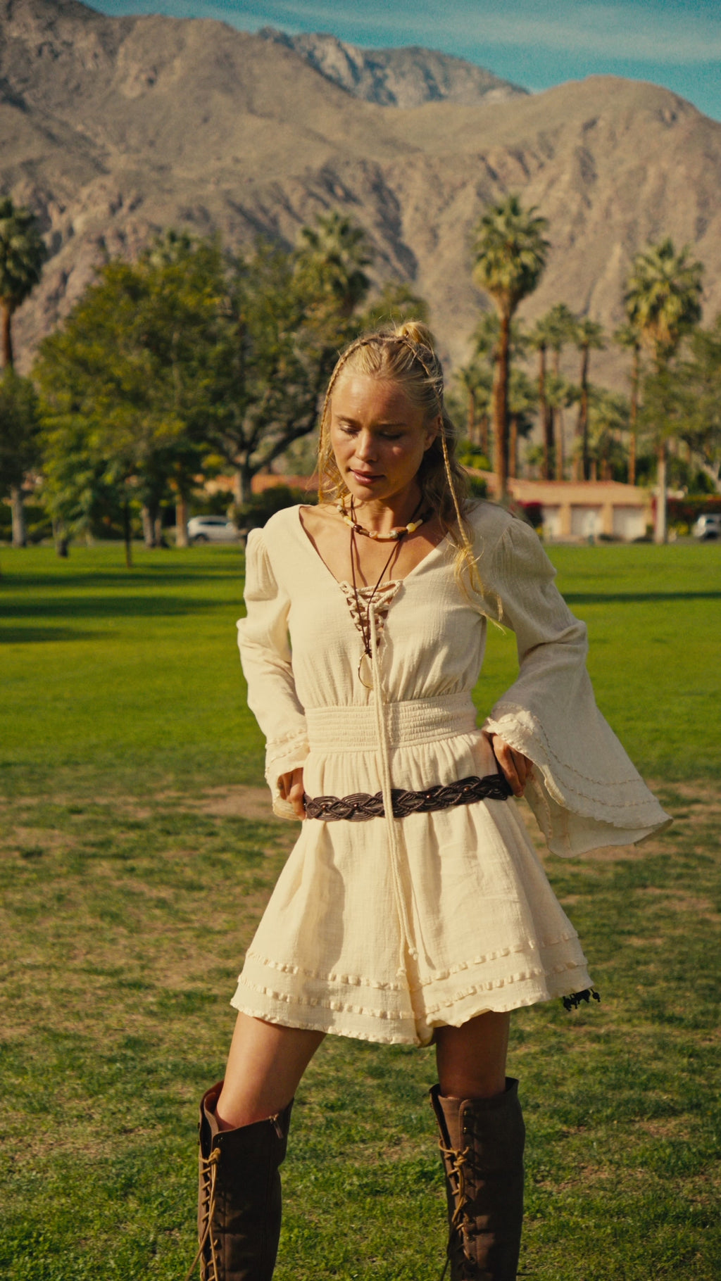 Feeling Free Cotton Lace-Up Bell-Sleeve Romper