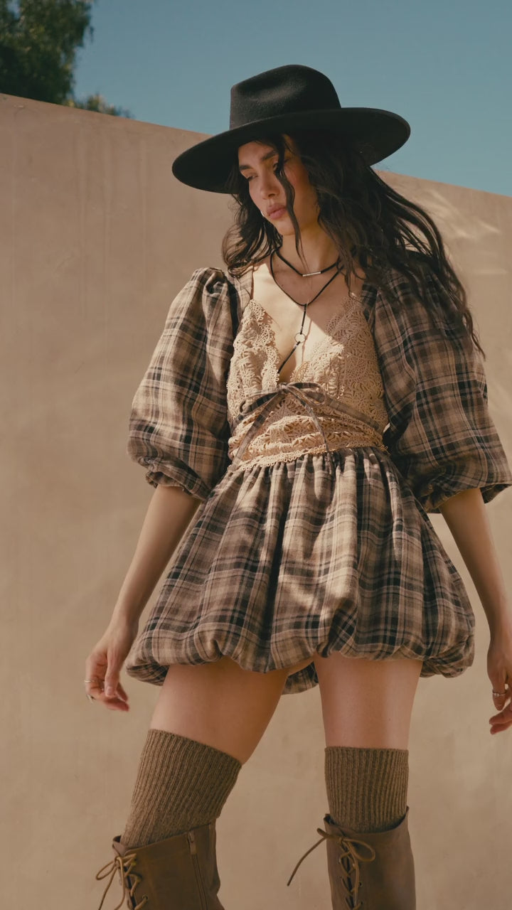 Country Cottage Plaid and Lace Bubble Mini Dress
