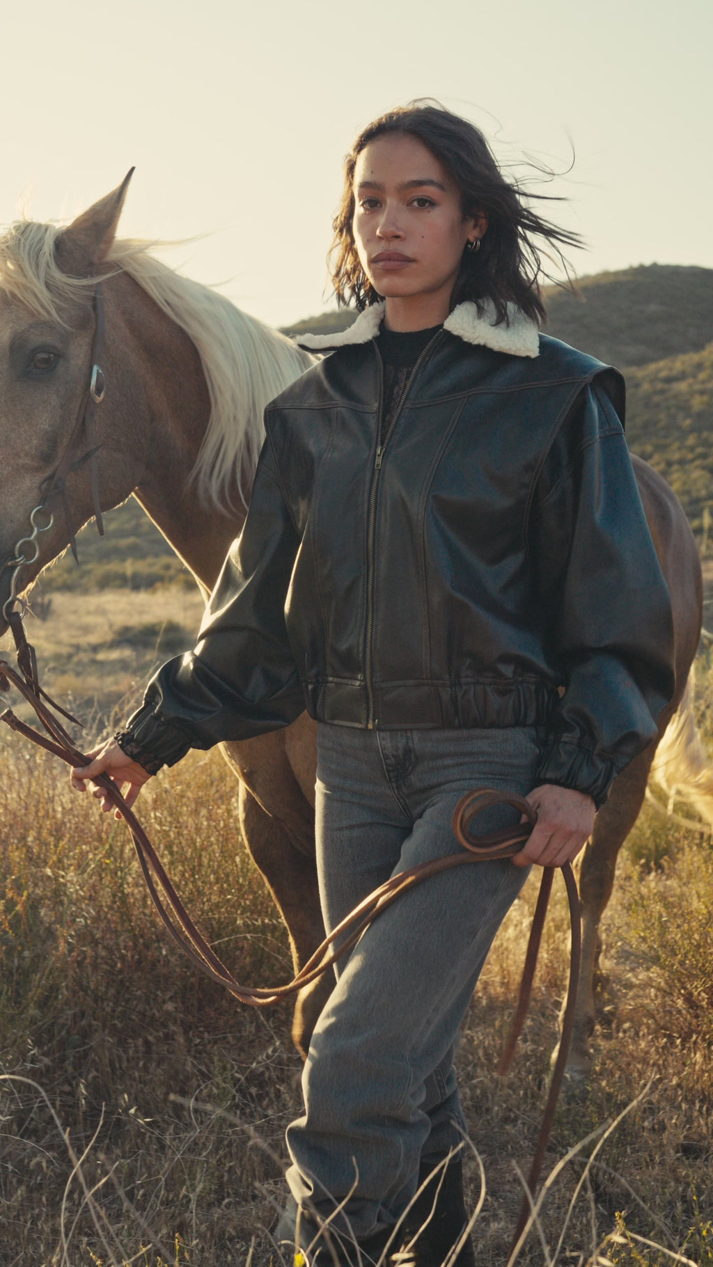 Taking Flight Fleece-Collar Faux Leather Jacket