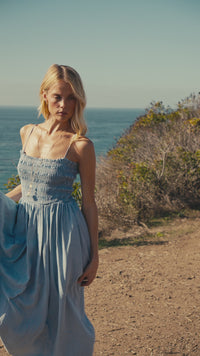 Beauty in Blue Smocked Denim Pocket Midi Dress