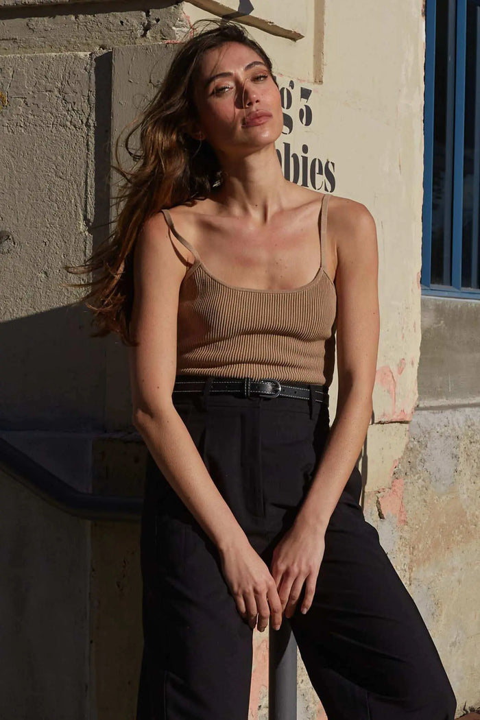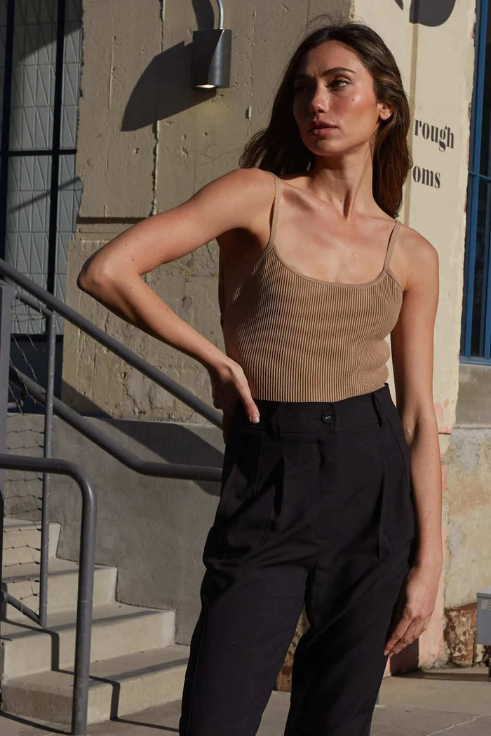 Promise the Label Rib-Knit Layered Lace-Up Tank Top