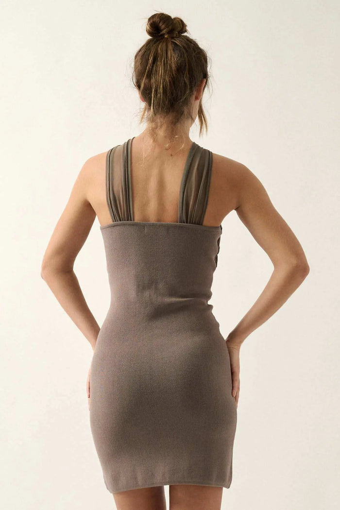 Shaper Fit Cross-Front Rib-Knit Mini Dress
