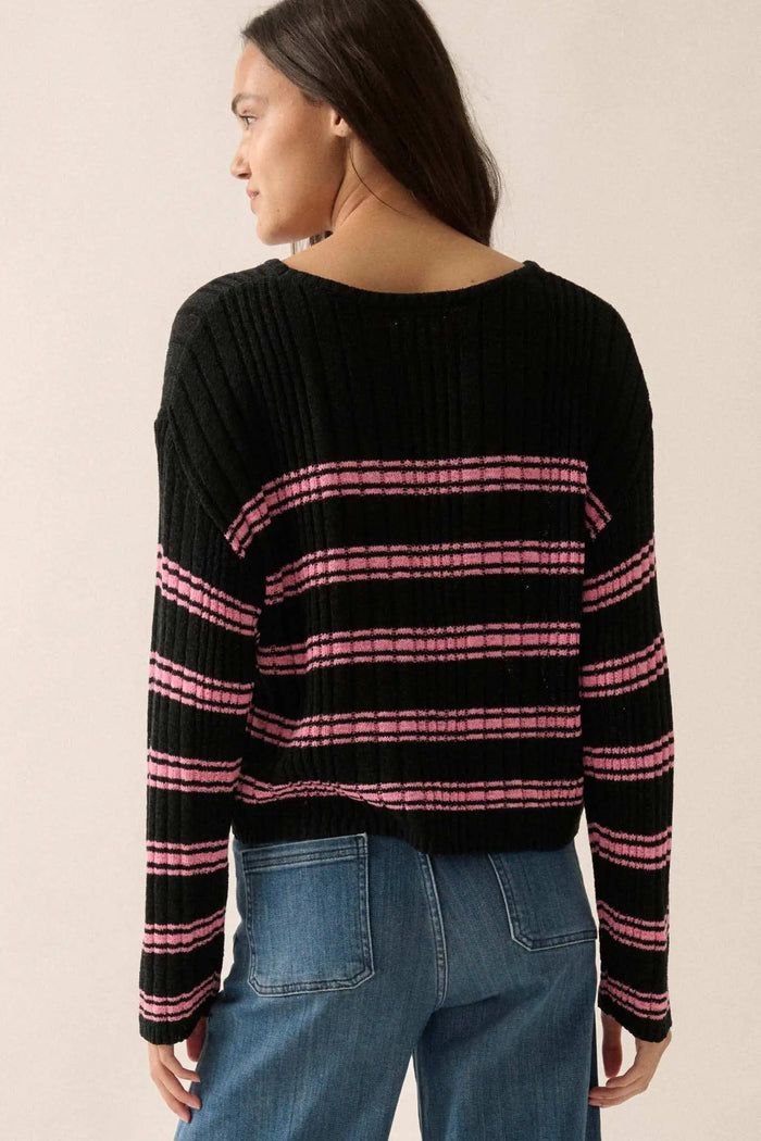On the Line Striped Wide-Sleeve Loose-Fit Sweater
