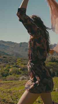 Dare to Imagine Abstract-Print Belted Shirt Romper
