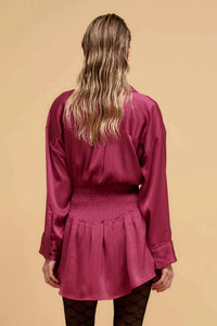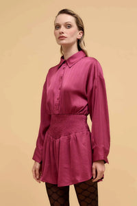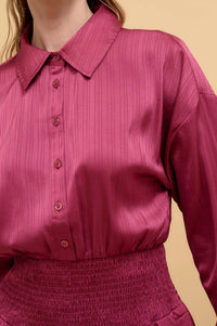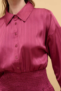 Silky Sensation Striped Satin Smocked Shirt Romper - ShopPromesa