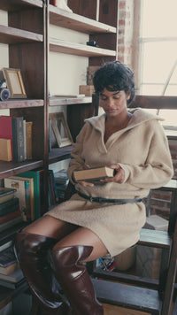 Warm Welcome Collared Split-Neck Mini Sweater Dress