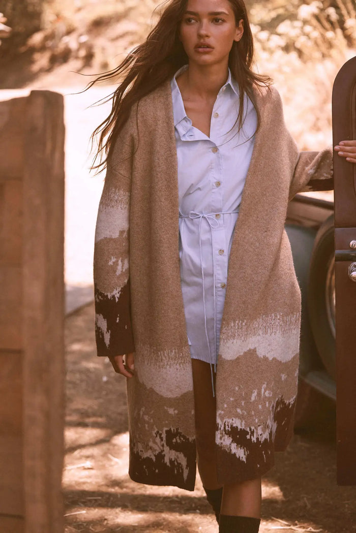 Square One Plaid Jacquard-Knit Duster Cardigan