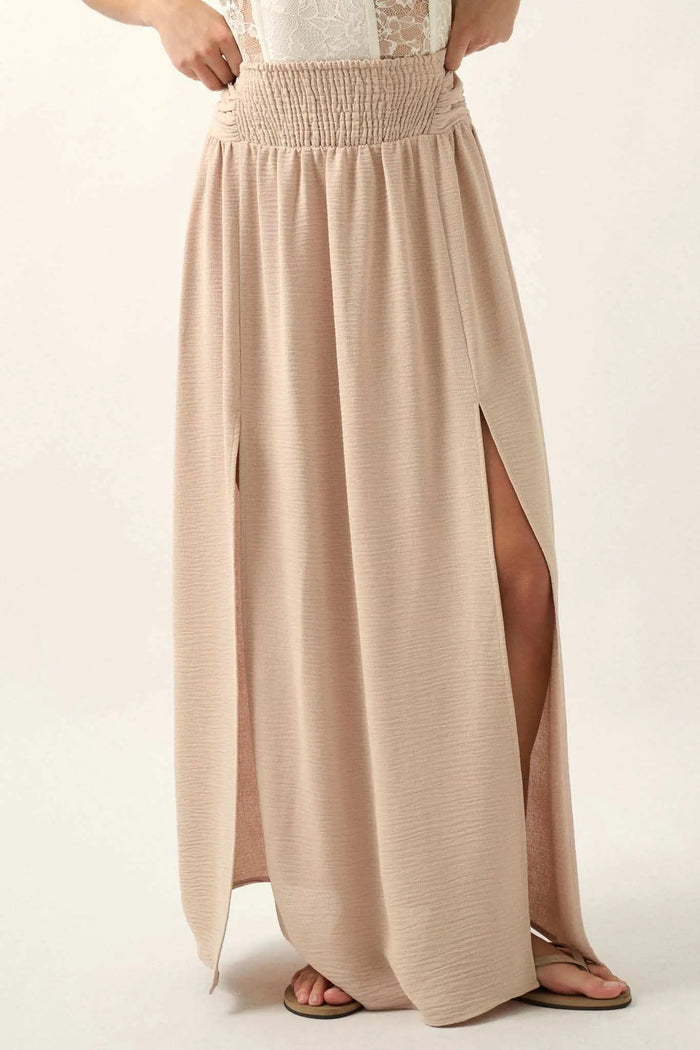 Luster for Life Pleated Textured Satin Maxi Skirt