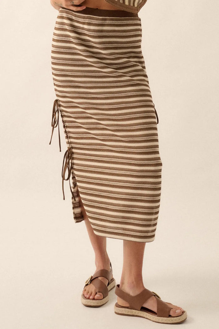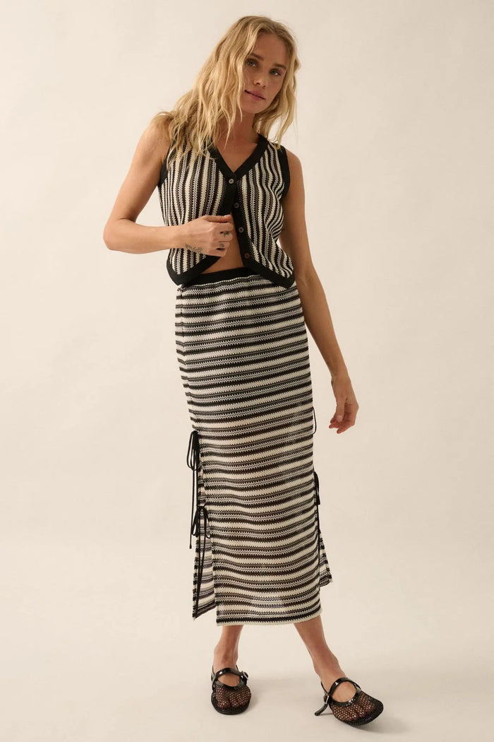 Line of Sight Striped Knit Side-Tie Midi Skirt