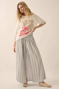 Blooming Tendrils Floral Gauze Buttoned Maxi Skirt