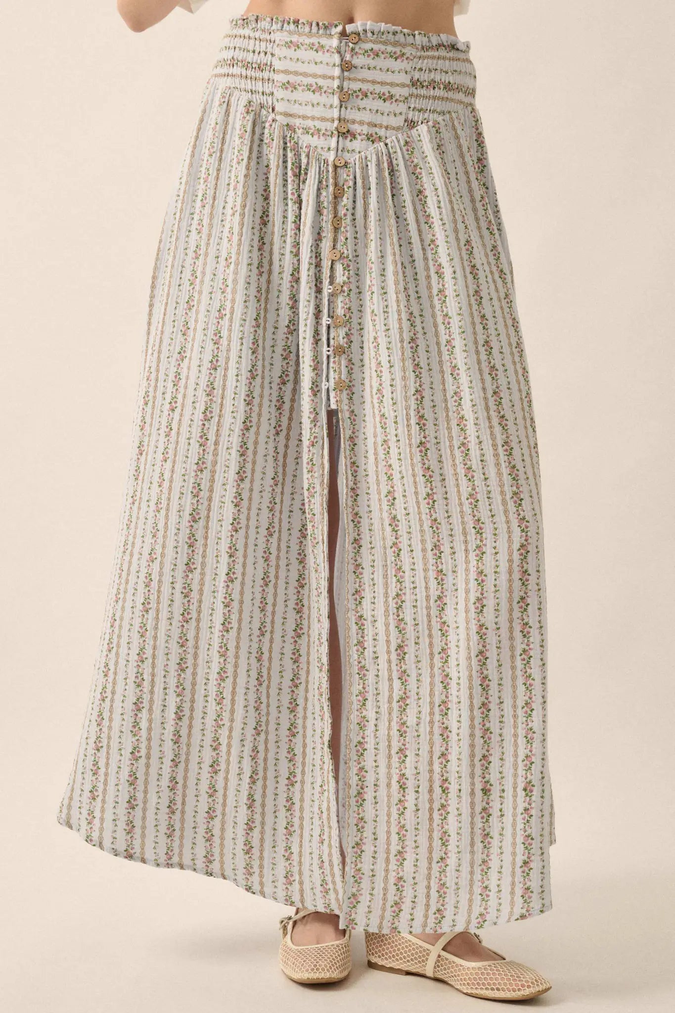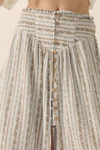 Blooming Tendrils Floral Gauze Buttoned Maxi Skirt - ShopPromesa