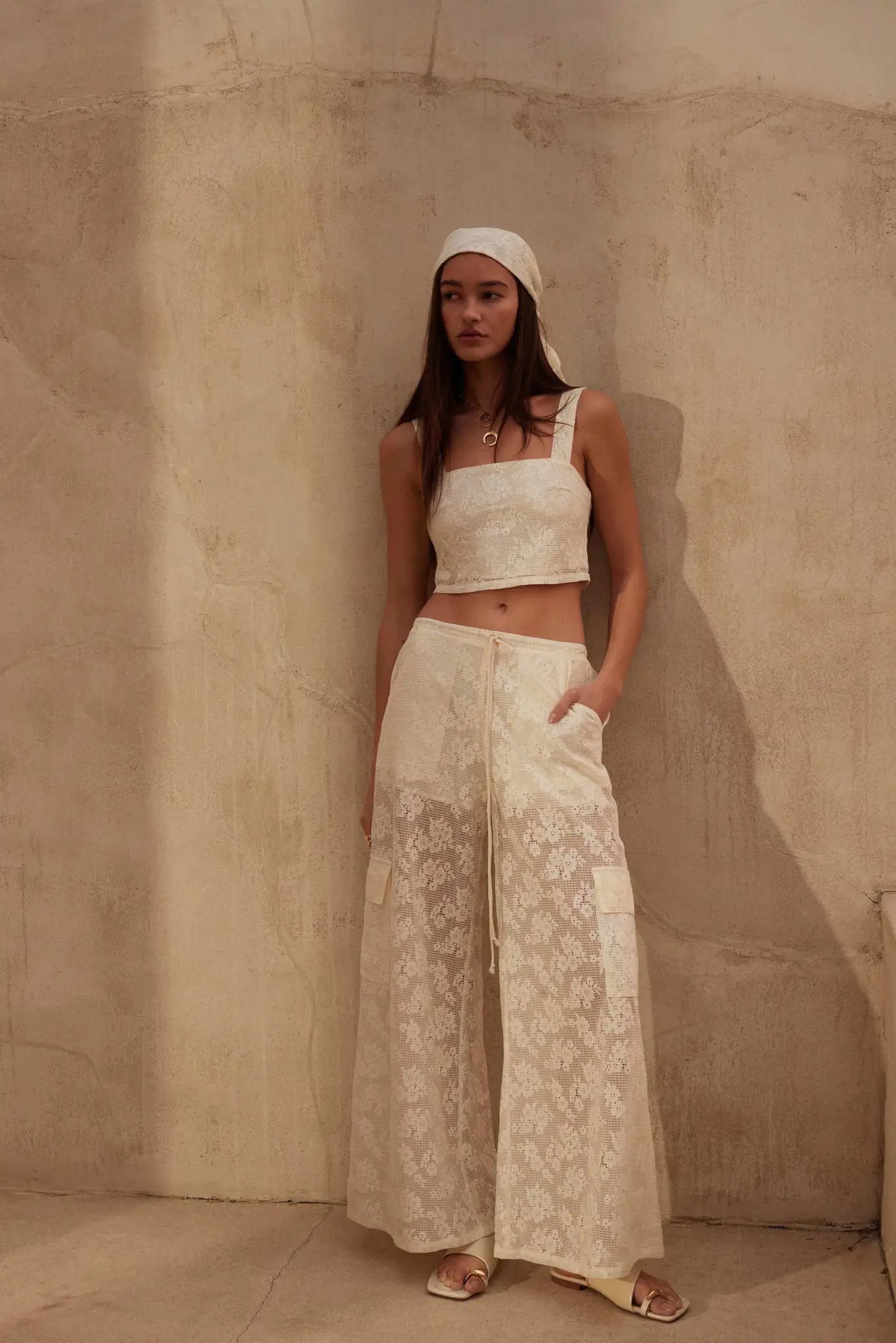 Light as Air Floral Lace Drawstring Cargo Pants
