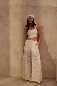 - Sheer floral lace pants.