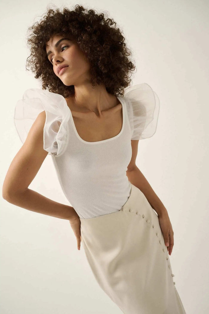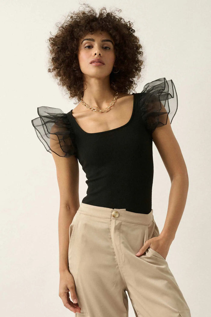 Bloom with Grace Floral Organza Peplum Peasant Top